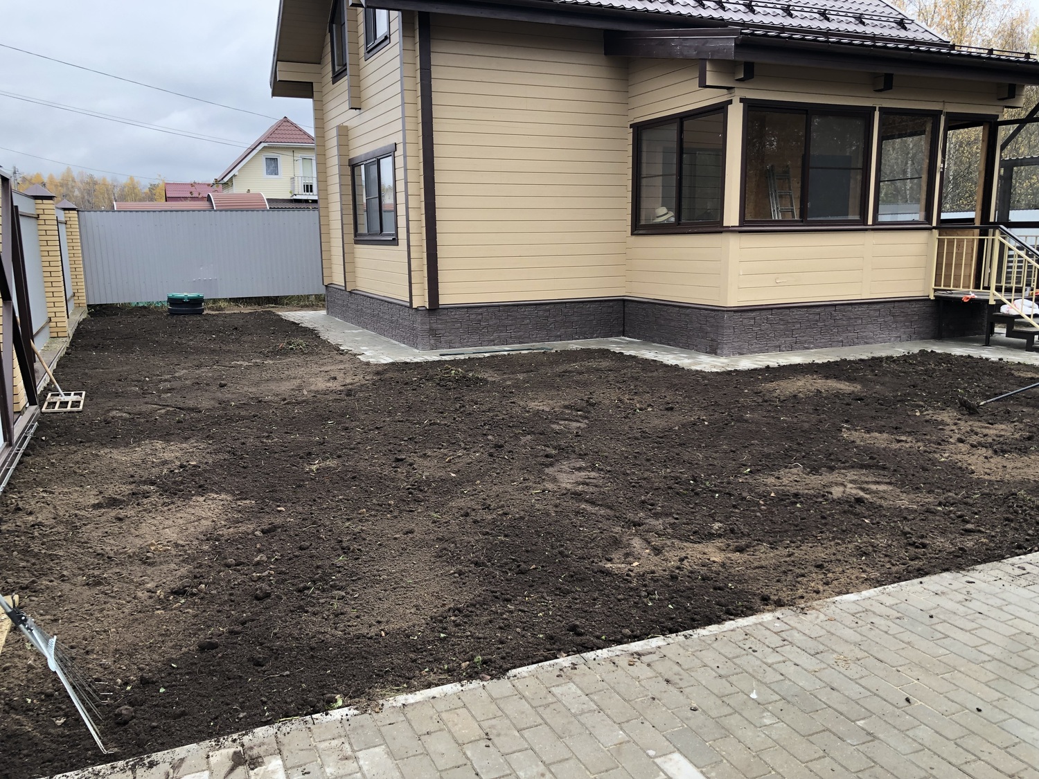 04.11.2025г Нашей компанией была выполнена работа по устройству посевного газона в городе Электрогорск Московской области. Задача, поставленная заказчиком, заключалась в создании устойчивого и эстетичного травяного покрова на участке со сложной историей землепользования. Предшествующий этап подготовительных работ включал в себя тщательную расчистку территории от строительного мусора и поросли, после чего был проведён детальный агрохимический анализ образцов почвы.Результаты анализа показали необходимость серьёзной мелиорации. Грунт обладал излишней плотностью и требовал улучшения структуры. Нами был осуществлён завоз и равномерное распределение по площади плодородного грунта, а также внесение стартовой дозы комплексных минеральных удобрений, специально подобранных для условий средней полосы России. Последующая глубокая вспашка и фрезерование позволили создать однородный, насыщенный кислородом корнеобитаемый слой, необходимый для успешного прорастания семян и развития мощной дернины.Выбор травосмеси являлся ключевым моментом проекта. Мы остановились на композиции, доминируемую мятликом луговым и овсяницей красной, с добавлением райграса пастбищного для быстрого начального результата. Данный состав доказал свою устойчивость к перепадам температур, механическим нагрузкам и обладает высокой конкурентоспособностью по отношению к сорным растениям. Посев был произведён в оптимальные агротехнические сроки, с использованием профессиональной сеялки, что гарантировало абсолютно равномерное распределение семян по всей площади участка. Непосредственно после посева была произведена прикатка катком для обеспечения оптимального контакта семян с почвенной влагой.